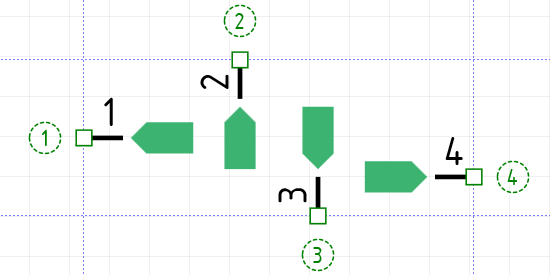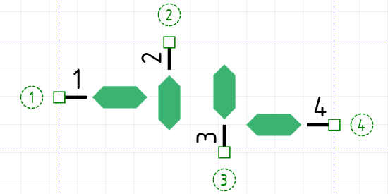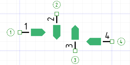 Обозначения выводов задаются с помощью панели «Свойства», см. раздел Свойства выводов.