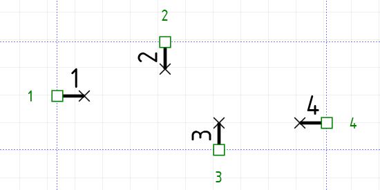 Обозначения выводов задаются с помощью панели «Свойства», см. раздел Свойства выводов.
